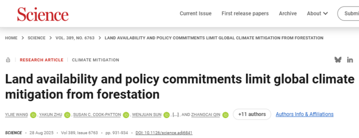 该项研究由中山大学牵头完成,中山大学大气科学学院博士生王艺杰为第一作者,覃章才教授为通讯作者。中国科学院研究员孙文娟、张稳、李婷婷,北京大学教授袁文平、博士生徐浩,厦门大学教授朱旭东、西北农林科技大学教授岳超、美国自然保护协会科学家SusanCook-Patton、法国原子能中心气候与环境研究室教授PhilippeCiais、英国阿伯丁大学教授PeteSmith,澳大利亚联邦科工组织教授JosepCanadell等在研究中提供了重要支持。中山大学博士生朱娅坤、邓小鹏、许逸凡也参与了研究工作。研究得到了国家自然科学基金(U21A6001,42141020)、广东省科技项目(2024B1212070012)等支持。
